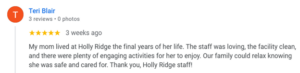 Holly Ridge Manor has space available in the sunroom or multipurpose room for local group clubs (bridge club, book club etc.) to meet! Keep them in mind, contact Daphne at HRM